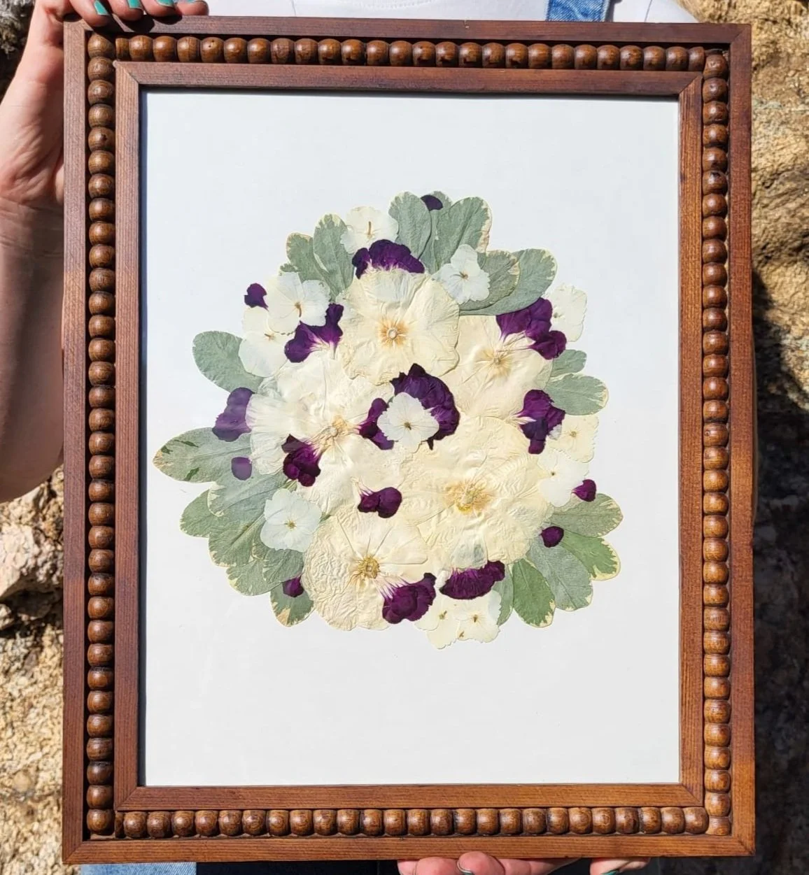 At Pressed in the Park, we skillfully press and preserve beautiful flowers, including wedding bouquets, capturing fleeting moments and transforming them into timeless pieces of art.